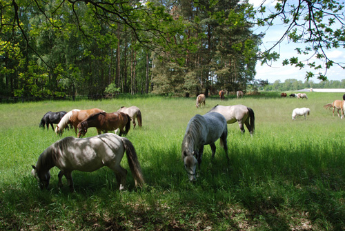 Wir bieten eine naturnahe Pferdehaltung, auf insgesamt ca. 30 ha Weideland. Unsere Ponys und Pferde laufen 24 h am Tag in der großen Herde. Es steht allen Tieren im Winter, rund um die Uhr Heu zur Verfügung. Das bedeutet, die Pferde können immer Heu fressen, wenn sie wollen.